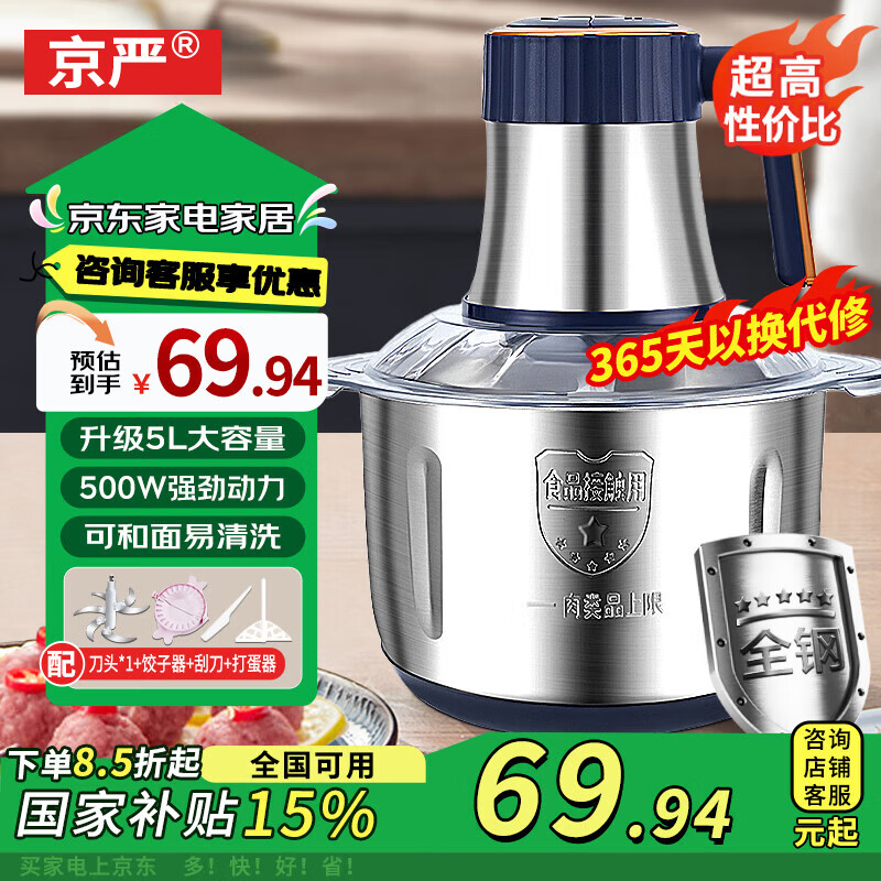 京严绞肉机家用电动绞馅机商用大容量碎肉打肉机婴儿辅食机多功能料理机搅馅搅菜搅肉机蒜泥肉沫搅拌机 旗舰款【6叶精钢刀+不锈钢】 大容量 5L