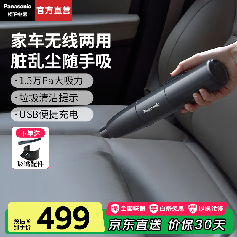 松下(Panasonic)【国家补贴】车载吸尘器手持式无线吸尘机家用小型除尘器缝隙死角专用低轻音大吸力H6H 暗夜灰【无线+15000PA大吸力】H6H