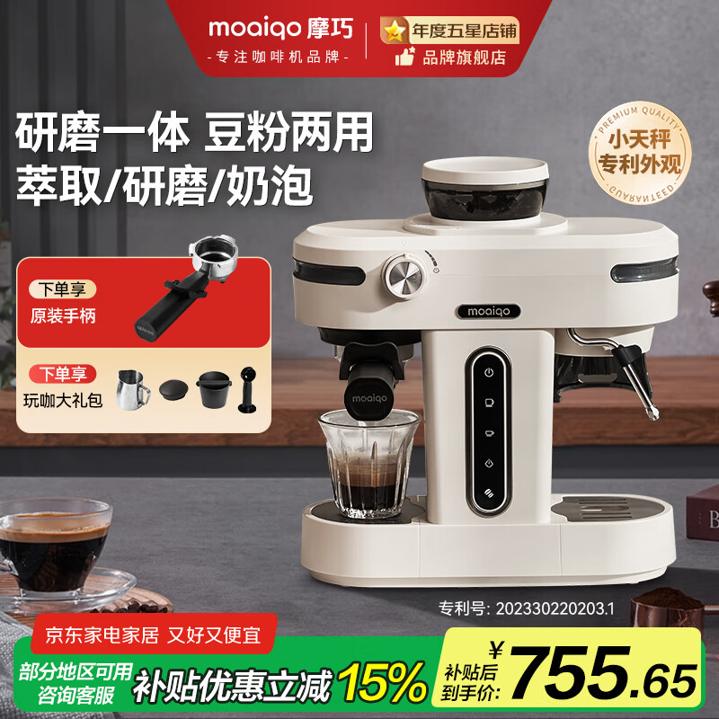 MOAIQO 摩巧咖啡机家用美式半全自动研磨一体机萃取小型意式办公室浓缩奶泡 七夕情人节礼物 小天秤K1 【高颜值】研磨一体机/丰富油脂