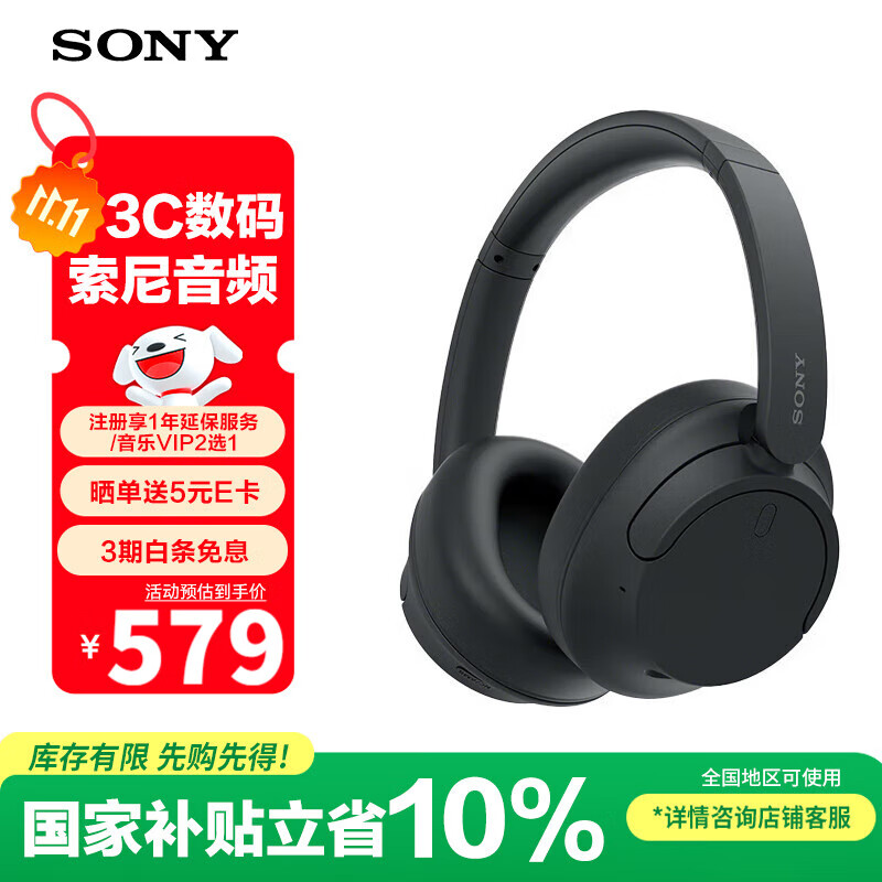 索尼(SONY) WH-CH720N 头戴式无线蓝牙耳机 长久佩戴 舒适高效 AI智能主动降噪 黑色