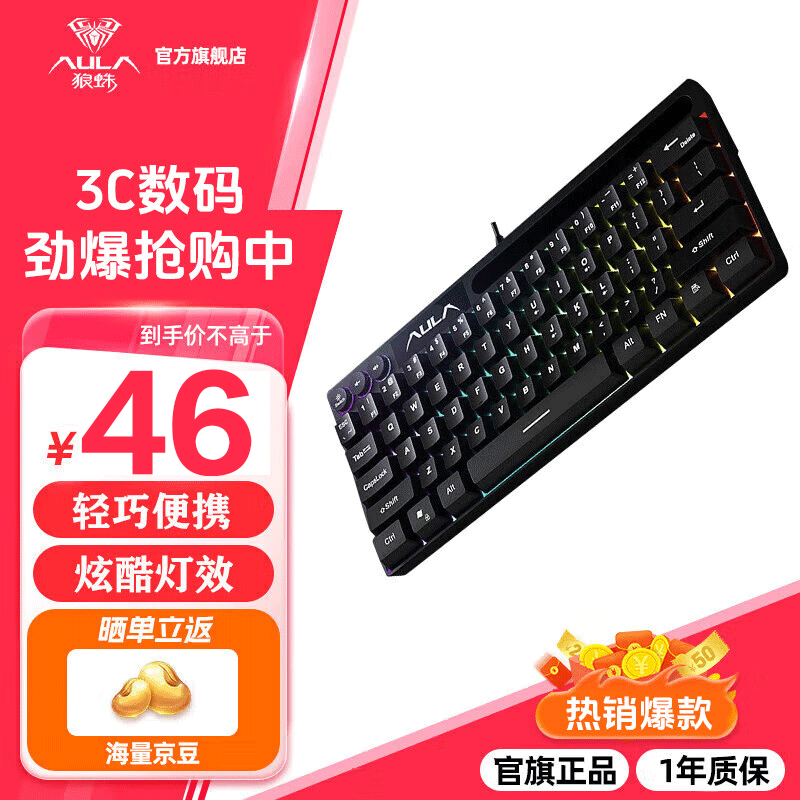 狼蛛(AULA)F3061机械手感键盘 有线mini小键盘 RGB背光键盘台式电脑笔记本办公游戏键盘 黑色【炫彩光】