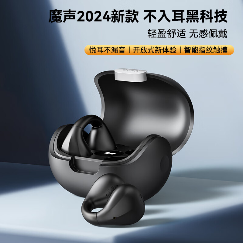 魔声(Monster)Open Ear101蓝牙耳机真无线超长续航久戴不痛开放式半入耳式通话音乐游戏运动跑步男女款 101黑色