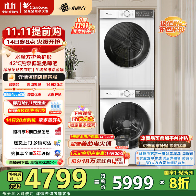 小天鹅(LittleSwan)洗烘套装10KG热泵烘干滚筒洗衣机 水魔方1.1洗净比除毛絮神器 【86+35升级款】186W+135W