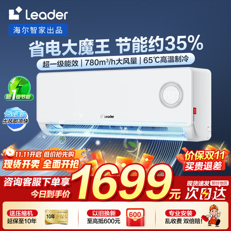 Leader空调海尔智家出品挂机1.5匹变频一级能效AI省电大风量防直吹低噪家用卧室空调特价25年款新品 1.5匹 一级能效 【新品】升级导板+冷风防直吹