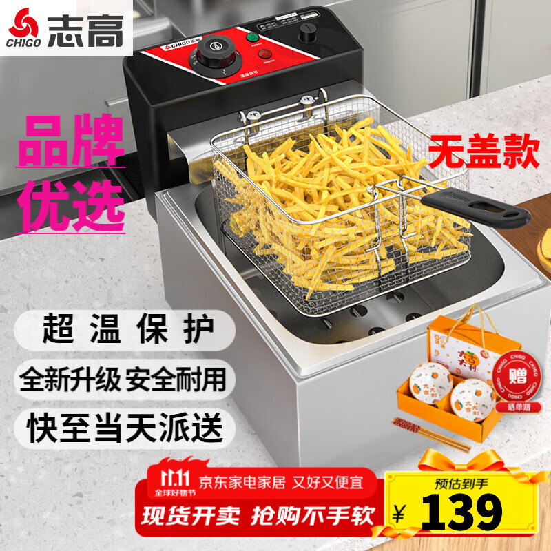 志高(CHIGO)电炸炉商用电炸锅油炸锅大容量串串油炸机鸡柳薯条油条油炸小吃设备 单缸|创业款|10L|单炸篮【无盖】
