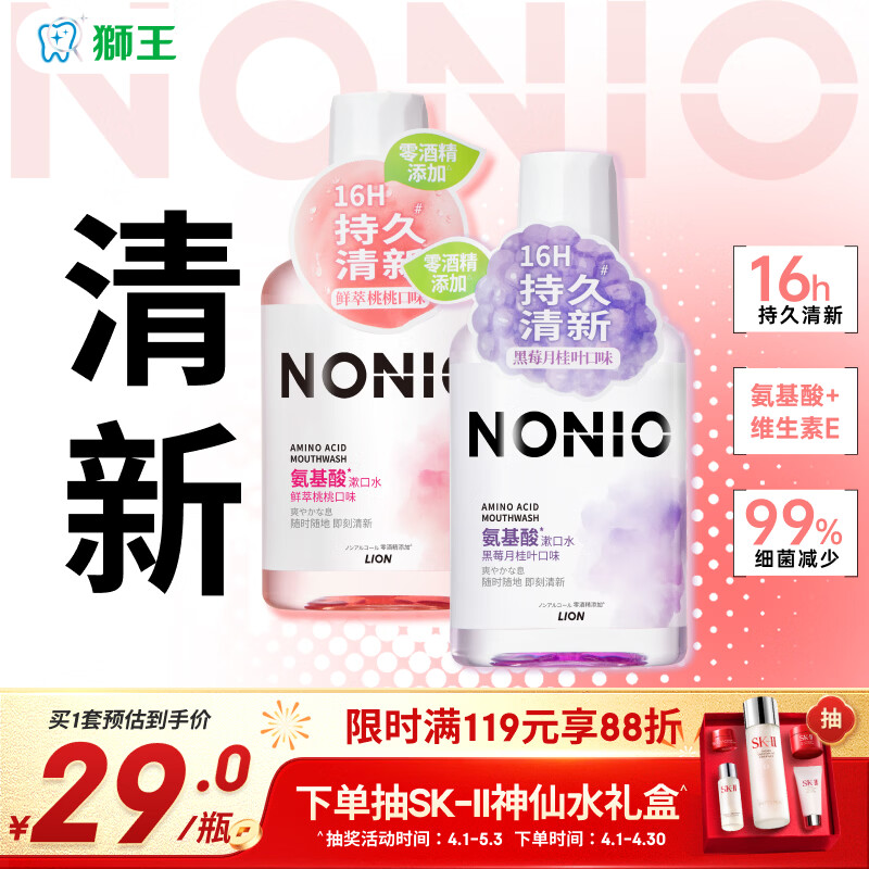狮王(Lion)(lion)NONIO氨基酸漱口水桃桃黑莓450ml*2零酒精零蔗糖