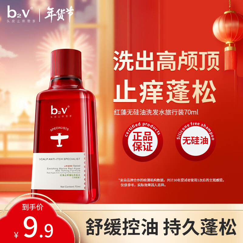 b2v红藻无硅油洗发水70ml小样去屑控油洗头膏男女士旅行小瓶便携装