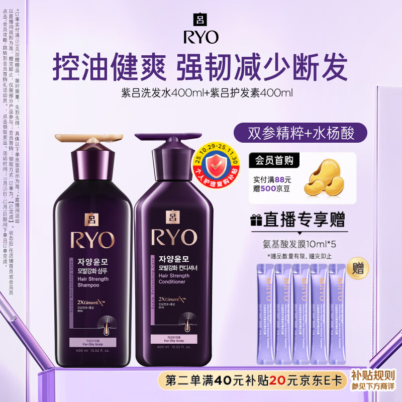 吕(Ryo)紫吕洗护套装 洗400ml+护400ml 强韧蓬松控油清爽防断发热门商品