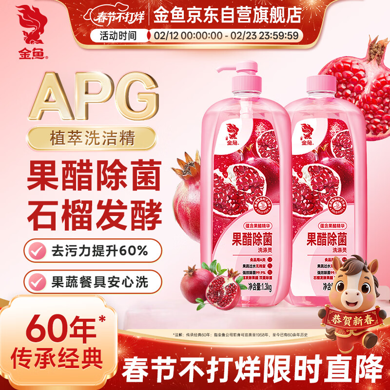 金鱼洗涤灵 果醋除菌洗碗洗洁精食品用果蔬净 清洗剂1.3kg*2瓶组合装