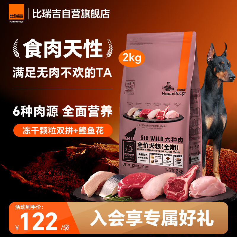 比瑞吉狗粮金毛泰迪六种肉系列高蛋白三文鱼无谷全价全期成犬幼犬粮2kg