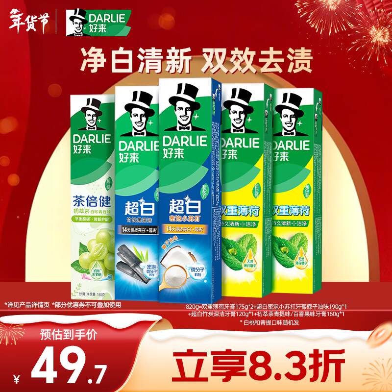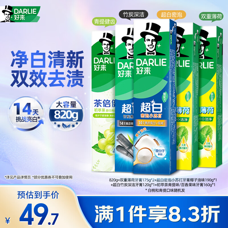 好来(原黑人) 清新美白牙膏套装抗口气净白去渍温和护牙龈5支820g