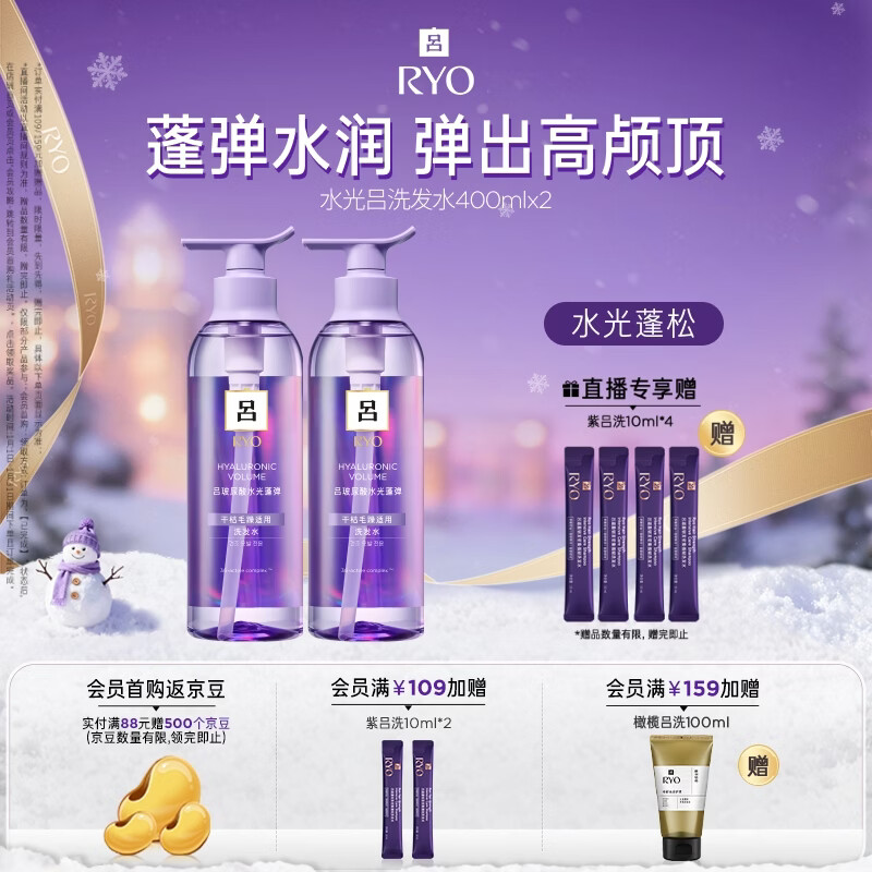 吕(Ryo)水光吕洗发水400ml*2玻尿酸水光蓬弹蓬松弹润水洗发膏热销商品
