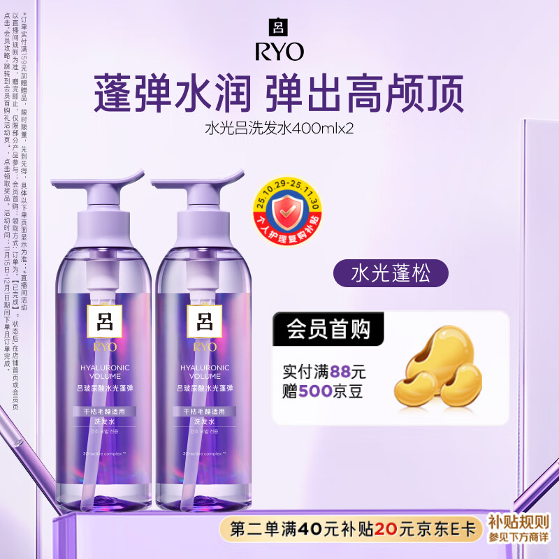 吕(Ryo)水光吕洗发水400ml*2玻尿酸水光蓬弹蓬松弹润水洗发膏热销商品