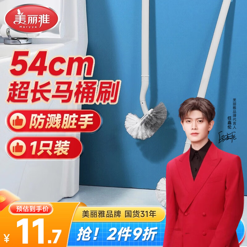 美丽雅长柄马桶刷54cm超长洗蹲坑厕所卫生间无死角刷圆头清洁刷