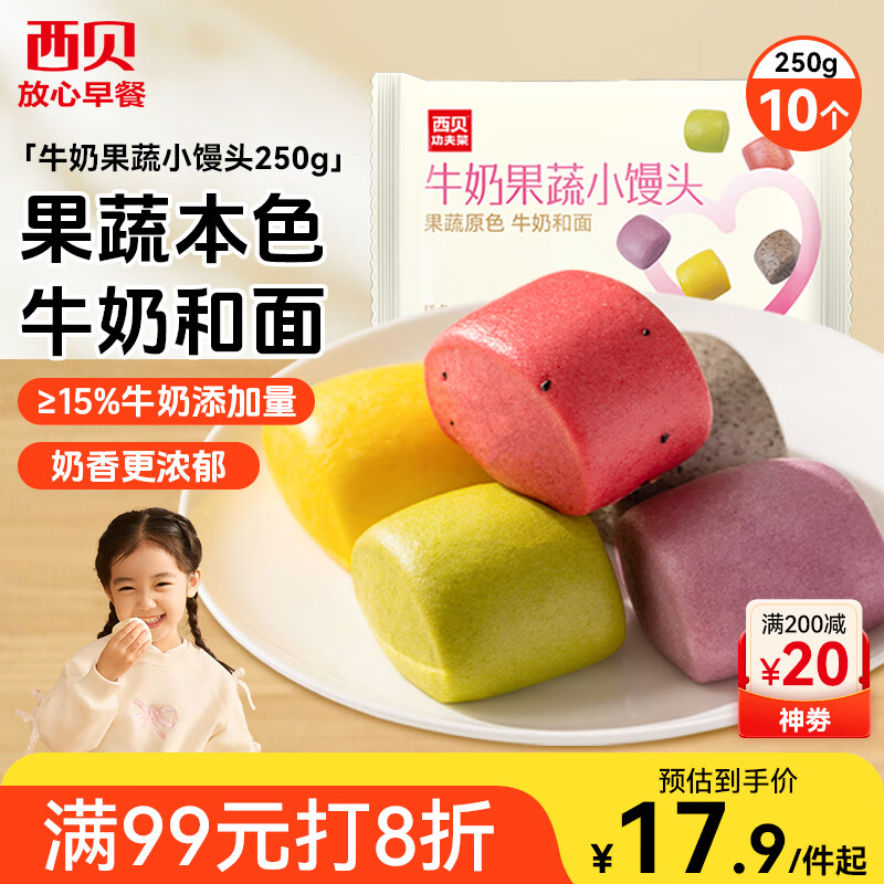 西贝莜面村牛奶果蔬小馒头250g 约10粒 宝宝儿童奶香馒头 方便早餐 面点生鲜