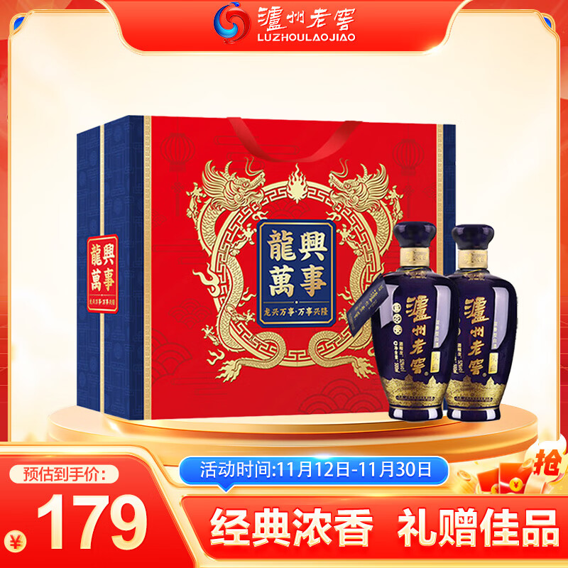 泸州老窖 蓝花瓷头曲 龙兴万事 白酒 礼盒 500ml*2瓶 组套