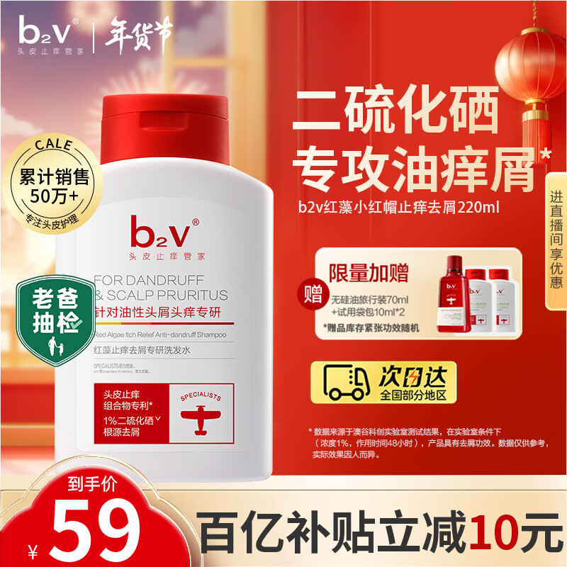 b2v【老爸测评】1%二硫化硒洗发水220ml小红帽水杨酸控油去油屑止痒