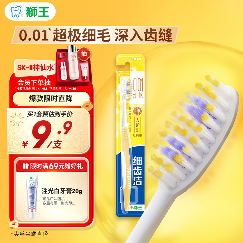 狮王(lion)细齿洁0.01弹力护龈牙刷1支装软毛8字植毛护龈深入清洁