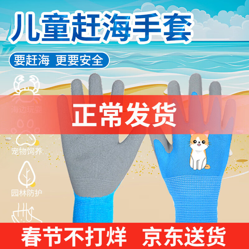 花沃里儿童防水手套8-10岁 赶海工具耐磨防滑防咬玩土挖沙防护园艺手套