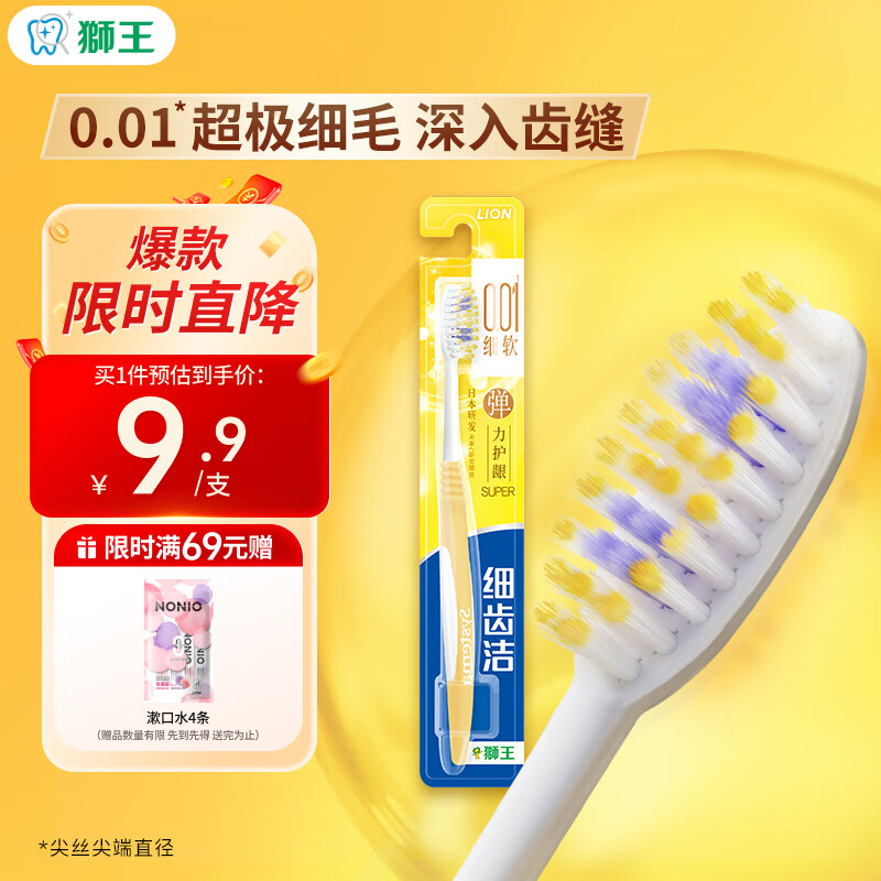 狮王(Lion)细齿洁0.01弹力护龈牙刷1支装软毛8字植毛经典护龈深入清洁