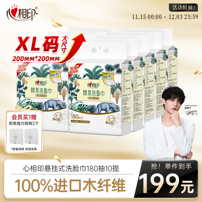 心相印洗脸巾棉柔系列180片*10提装悬挂式洗脸巾 柔厚 挂抽大箱囤货装