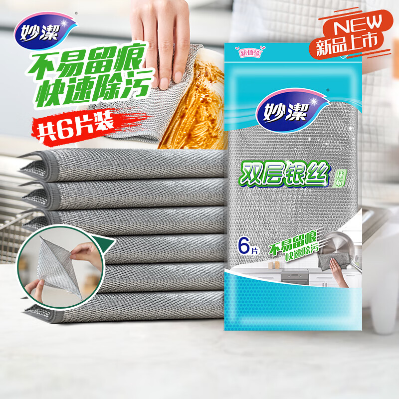 妙洁双层银丝抹布20*20cm 6片装 类钢丝球洗碗神器 百洁丝厨房刷锅网