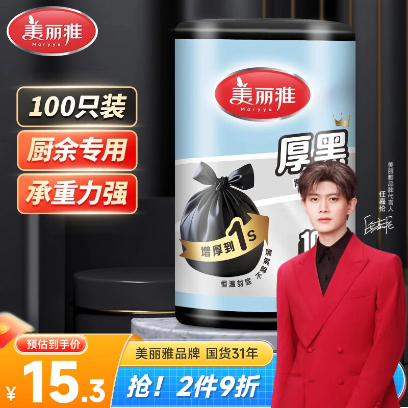 美丽雅背心垃圾袋黑色大号50*60cm100只1丝点断式加厚厨房家用垃圾袋