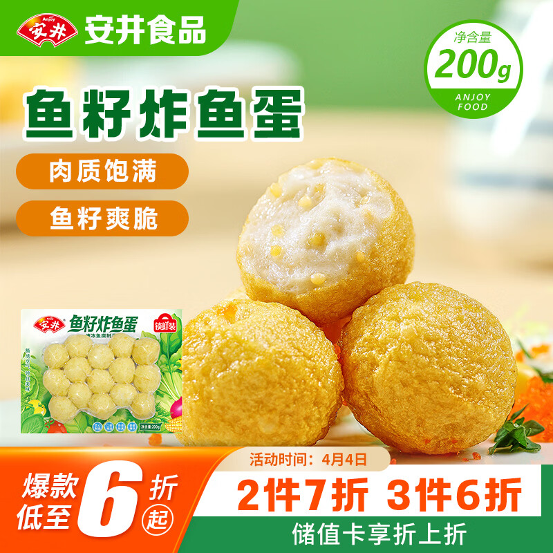 安井鱼籽炸鱼蛋 200g/包 锁鲜装 火锅麻辣烫关东煮 速食熟食方便菜