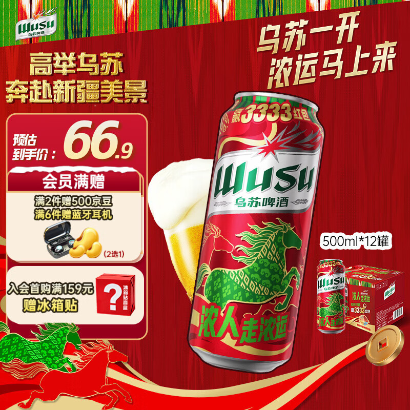 乌苏啤酒(wusu)京东自营大红乌苏风景罐婚宴500ml*12罐整箱装踏青出游