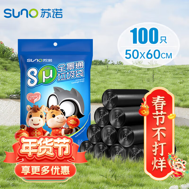 苏诺背心式垃圾袋黑色50*60cm*100只单面0.8丝手提大塑料袋大垃圾袋