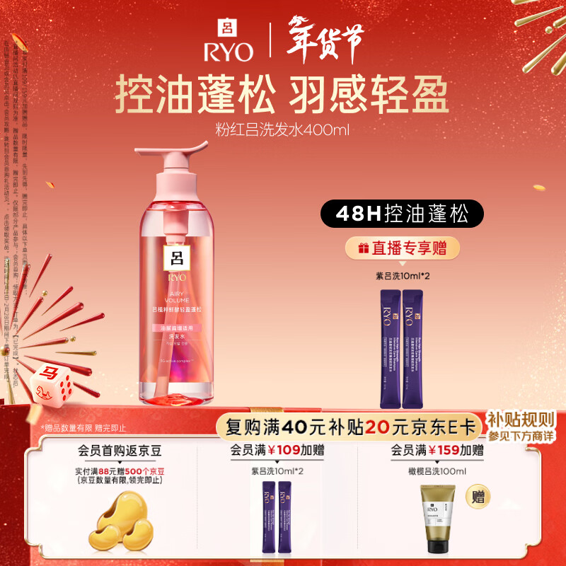吕(Ryo)粉红吕洗发水400ml 控油蓬松清爽净彻丰盈润泽洗发膏【热门商品】