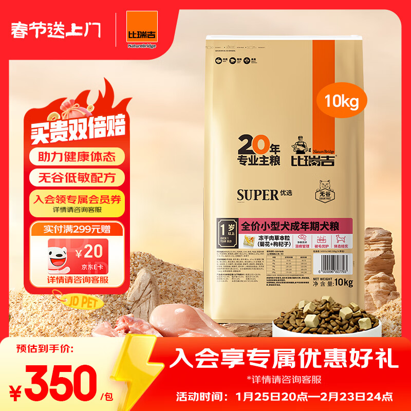 比瑞吉狗粮小型犬成犬优选系列草本冻干藻油鱼油核心配方升级10kgPRO