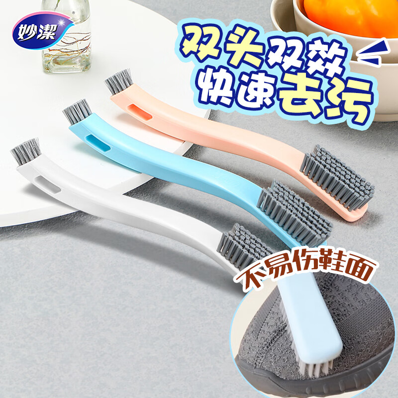 妙洁 抗菌鞋刷子双头双效去污清洁刷不掉毛 颜色随机