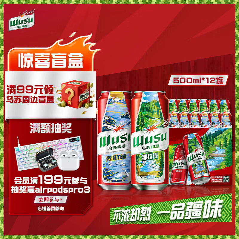 乌苏啤酒(wusu)京东自营大红乌苏烈性啤酒聚会露营婚宴酒席啤酒500ml*12罐箱装