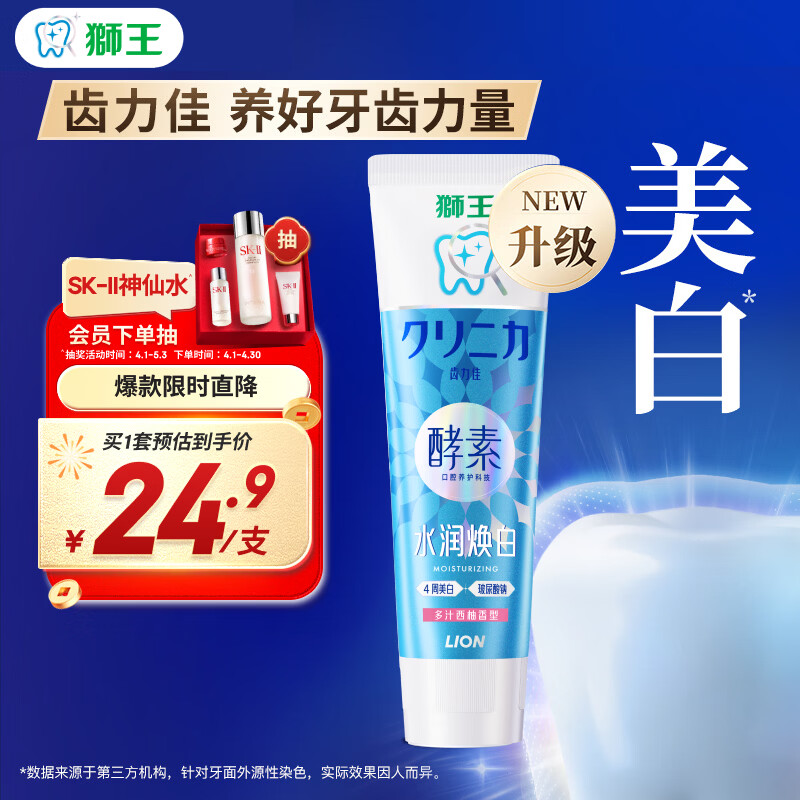 狮王(Lion)齿力佳酵素牙膏多汁西柚120g新老包装随机发货