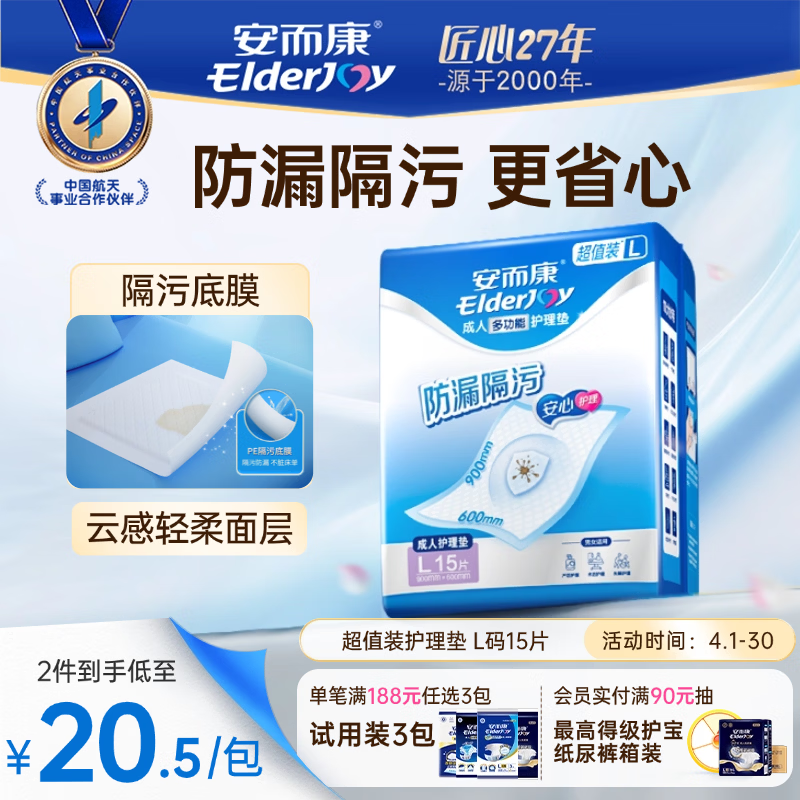 安而康(Elderjoy)超值装护理垫L15片60*90cm隔尿垫老人护理垫产妇婴儿产褥垫