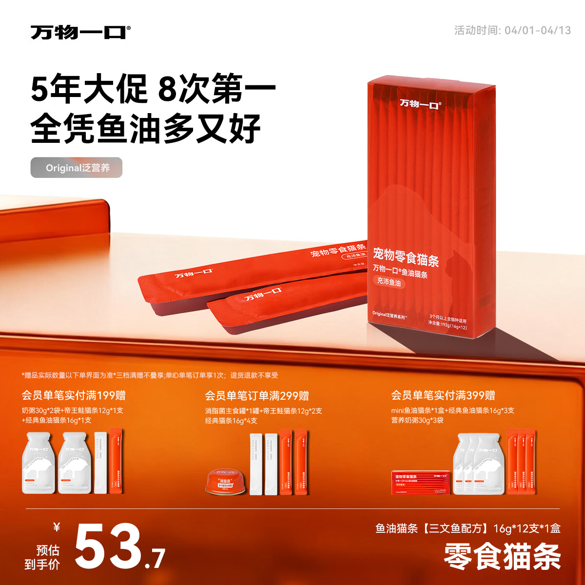 万物一口Original泛营养系列鱼油猫条0添加成幼猫零食猫湿粮16g*12支