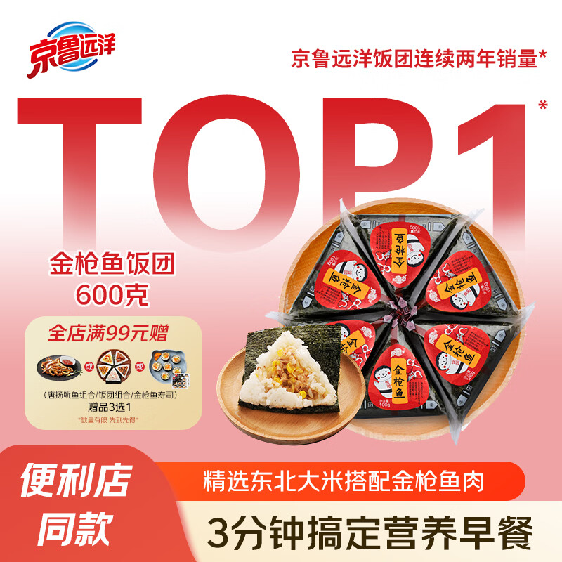 京鲁远洋金枪鱼三角海苔饭团600g 6枚装 儿童早餐 便利店711同款