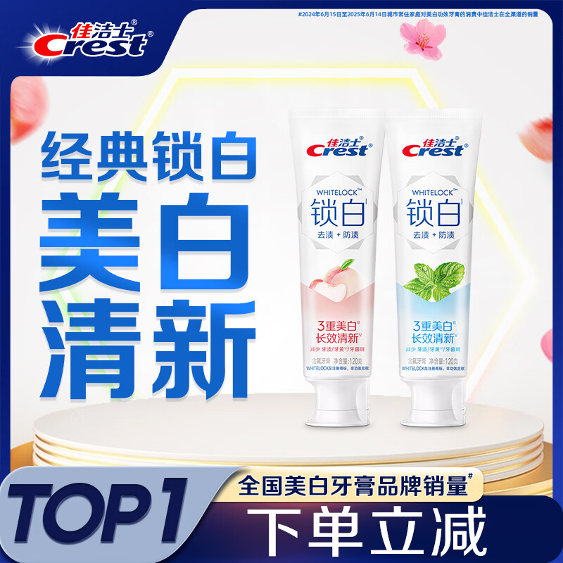 佳洁士锁白薄荷白桃牙膏去渍美白清新口气2支共240g京东自营