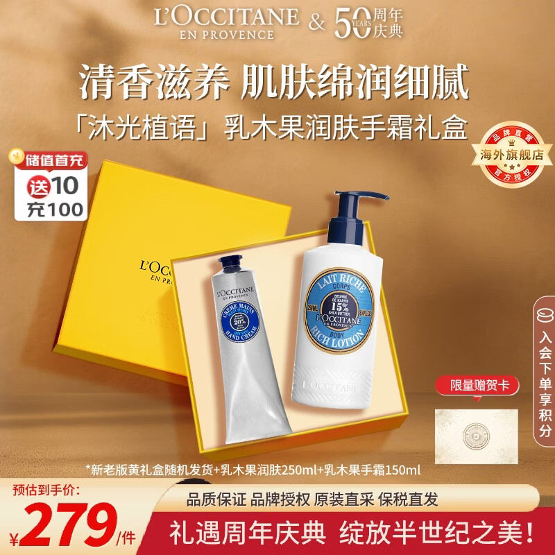 欧舒丹乳木果护手霜150ml+身体乳250ml经典礼盒法国进口男女士礼物