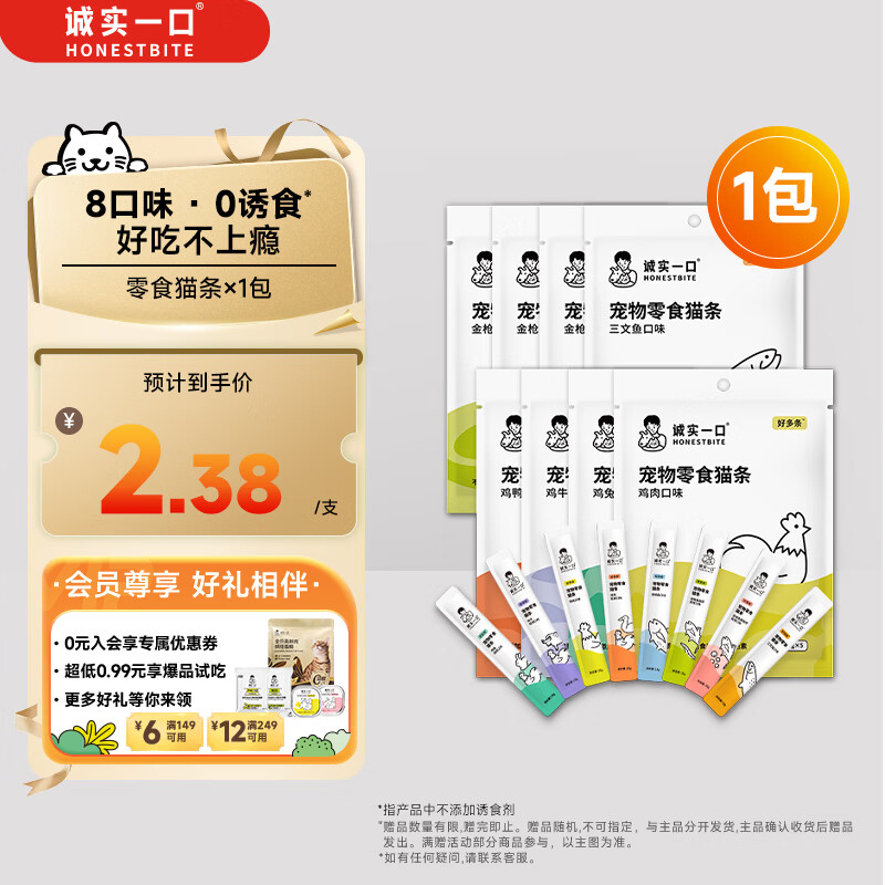 诚实一口猫咪零食猫条猫零食 幼猫成猫好多条 无诱食剂三文鱼味10g*5条