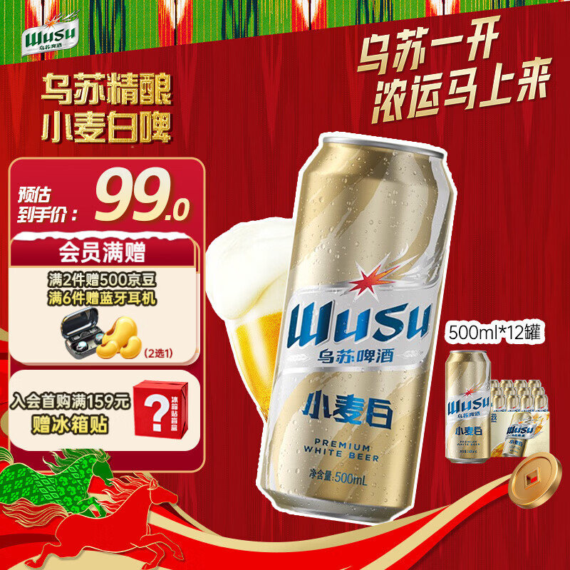 乌苏啤酒(wusu)京东自营小麦经典白啤易拉罐装500ml*12罐踏青出游