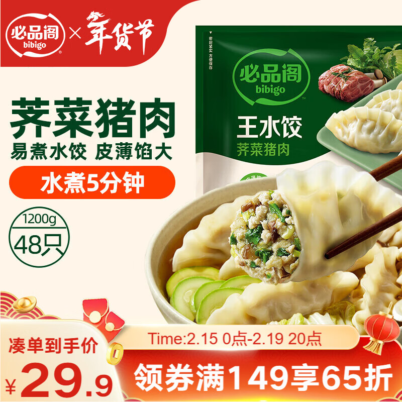 必品阁(bibigo)荠菜猪肉水饺 1200g 约48只 早餐夜宵 生鲜速食饺子 速冻食品年货