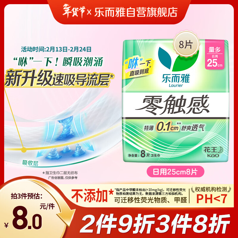 乐而雅花王零触感特薄日用护翼型卫生巾25cm8片姨妈巾京东自营新国标