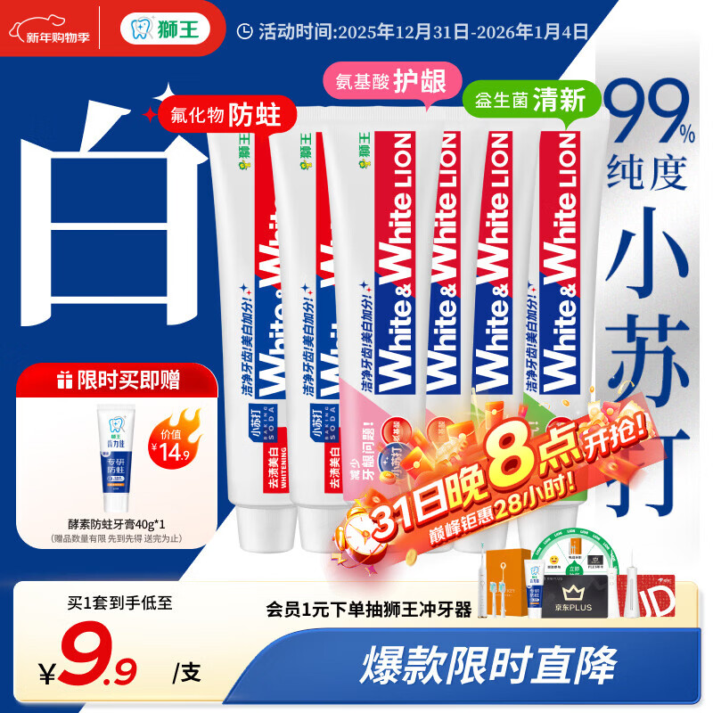 狮王(Lion)WhiteWhite牙膏美白护龈含氟套装120g*6抑菌去黄去牙渍自营