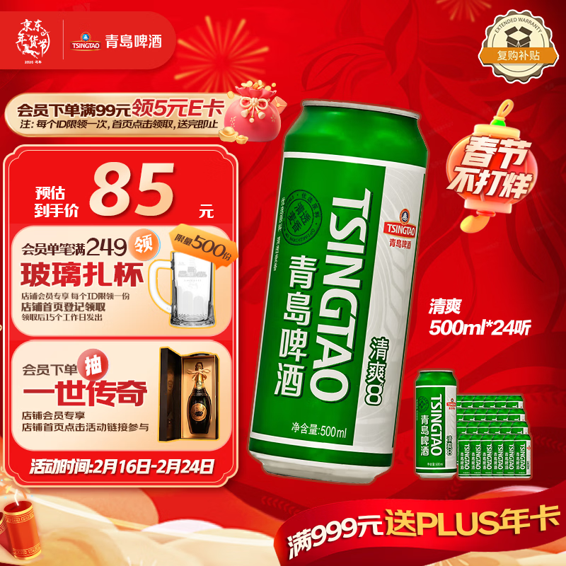 青岛啤酒(TsingTao)清爽500ml*24听整箱装 啤酒整箱批发 年货送礼