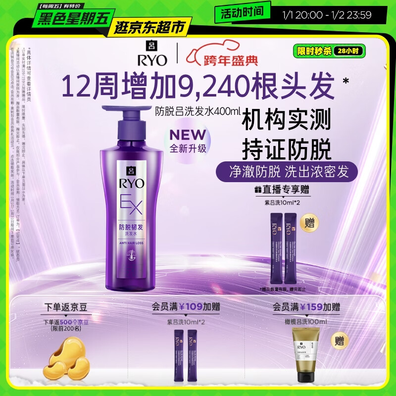 吕(Ryo)防脱吕洗发水400ml 持证防脱固发强韧发根洗发膏【升级款】