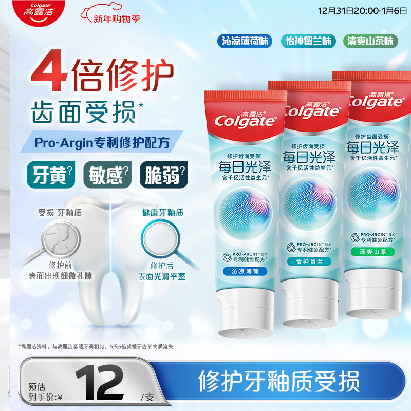高露洁(Colgate)【孙颖莎同款】每日光泽修护牙膏混合口味组合装360g新老包装随机