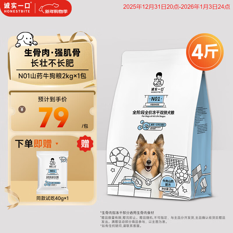 诚实一口N01冻干双拼犬粮狗粮 成犬幼犬生骨肉强健脾胃山药牛味通用型2kg