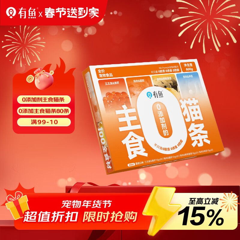 有鱼主食猫条0添加剂湿粮包营养增肥发腮 混合口味10g*80条礼盒装